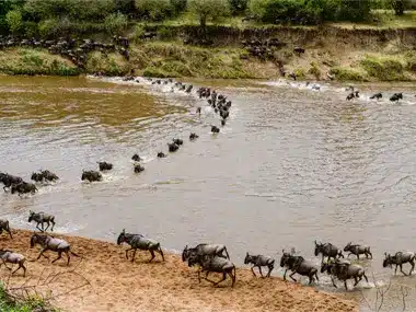 The best time for river crossing in the Serengeti is July through October, with the peak concentration of crossings typically happening in August and September. July is when the herds first start arriving in the north and the earliest crossings begin – it’s exciting precisely because of the unpredictability.